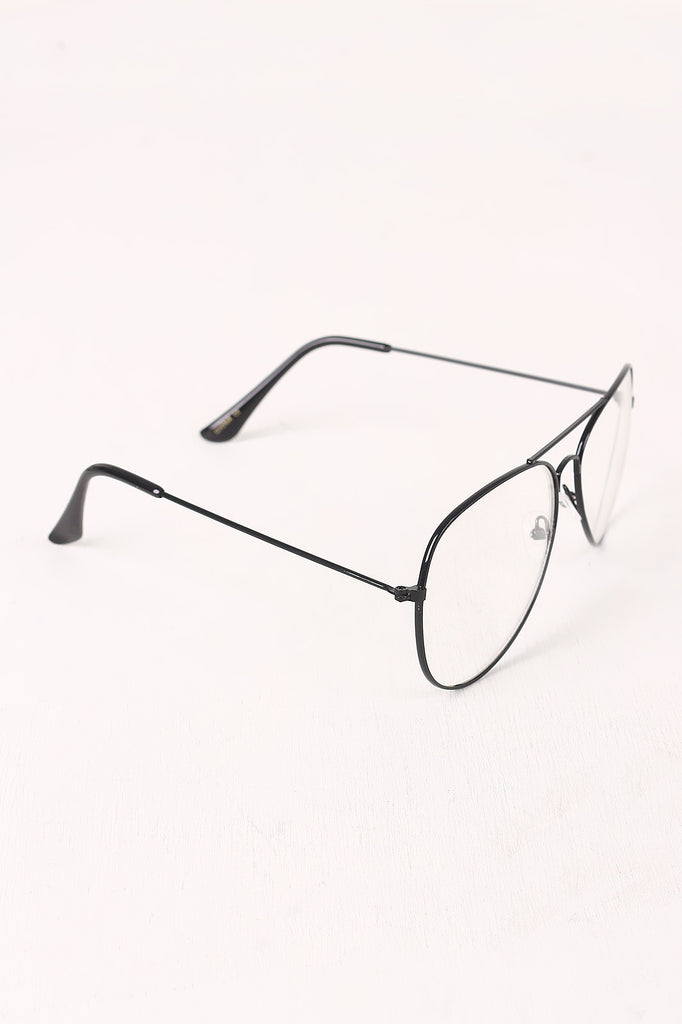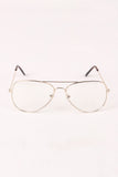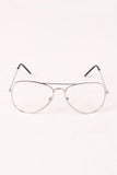 These aviator glasses feature a clear lens, thin wire aviator frames, double bridge, and nose pads.
