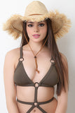 This sun hat , features a pinched crown and an adjustable drawstring tassel that wraps around the crown and dangles down to below the neck. Wide brim design with raw edged straw. 100% Grass.