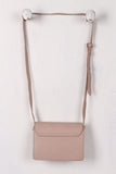 This lovely crossbody bag features a vegan leather and textured fabrication. Finished with a magnetic snap closure with a hoop accent, full lining, attached keychain, four compartments, and an adjustable shoulder strap.