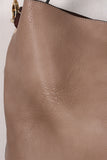 This tote bag features pebbled vegan leather fabrication, removable gold-tone chain shoulder strap, single handle, and a magnetic button top closure. Includes an extra inner bag with a top zipper closure, adjustable and a removable vegan leather strap. Interior if inner bag includes one zipper pocket and two slip pockets.