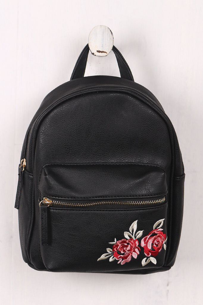 This adorable mini backpack features vegan leather fabrication, rose flower embroidery, front small zipper pocket, and a large main zipper pocket. Main zipper pocket features inner zipper closure pocket, top strap, and adjustable shoulder straps.