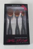 This three piece set of oval brushes features soft bristles and different sizes from small, medium, and large for multi purposes. The large brush is used for eyeshadow, foundation, blush, contour, bronzer, and powder. The medium size brush includes everything from brush one including concealer. The small brush is for concealer and eyeshadow.