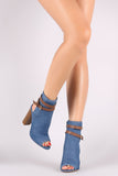 Liliana Denim Buckle Strap Exposed Back Chunky Heeled Booties