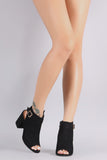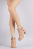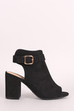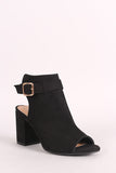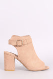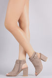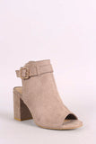 • Bamboo Suede Buckled Ankle Strap Chunky Mule Ankle Boots