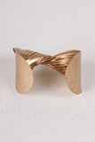 This bracelet features a brushed metal finish, textured detail, slit twisted design, and open ended for easy on/off.