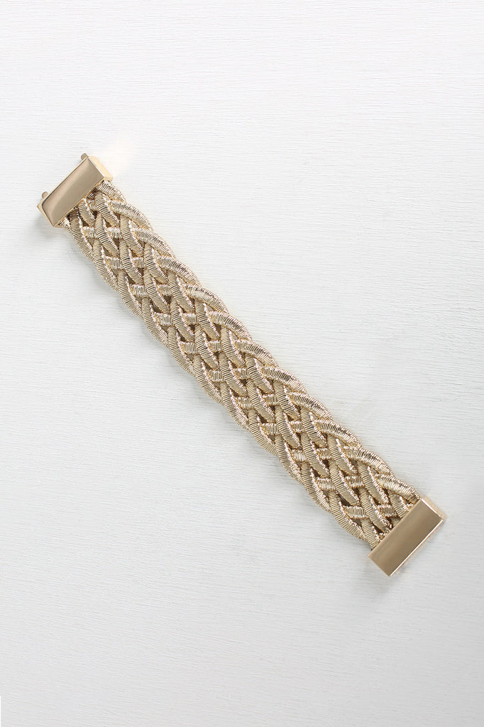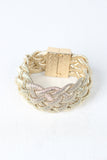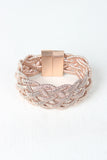 This bracelet features a metallic look, thick banded design, twisted rope construction and a magnetic closure.