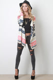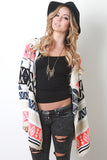 Featuring tribal print throughout, woven knit fabric, open front, and asymmetrical hem. Accessories sold separately. 100% Acrylic.