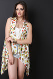 FREE SH & Easy Returns! Shop this sleeveless vest features melon pattern prints, open waterfall front, and asymmetrical hemline.