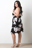 This plus size midi dress features a floral print design, textured fabrication, scooped neckline, sleeveless construction, and a cinched waist seam. Finished with a back keyhole cutout with a single button closure at nape and flare skirt. Accessory sold separately. 97% Polyester, 3% Spandex.