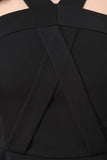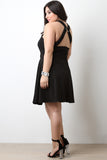This dress features a crisscross construction design, wide shoulder straps, o-ring hardware back, high waisted cinched seam, skater flare skirt, and a rear zipper closure. Accessory sold separately. 100% Polyester.
