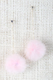 These cute earrings feature a rhinestone with dangling fluffy pom-poms and finished with post back.