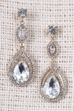 These glamorous earrings feature layered teardrops of shiny rhinestones throughout and post back closures.