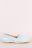 • Frayed Denim Espadrille Slip On Loafer Flat