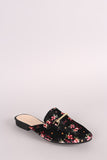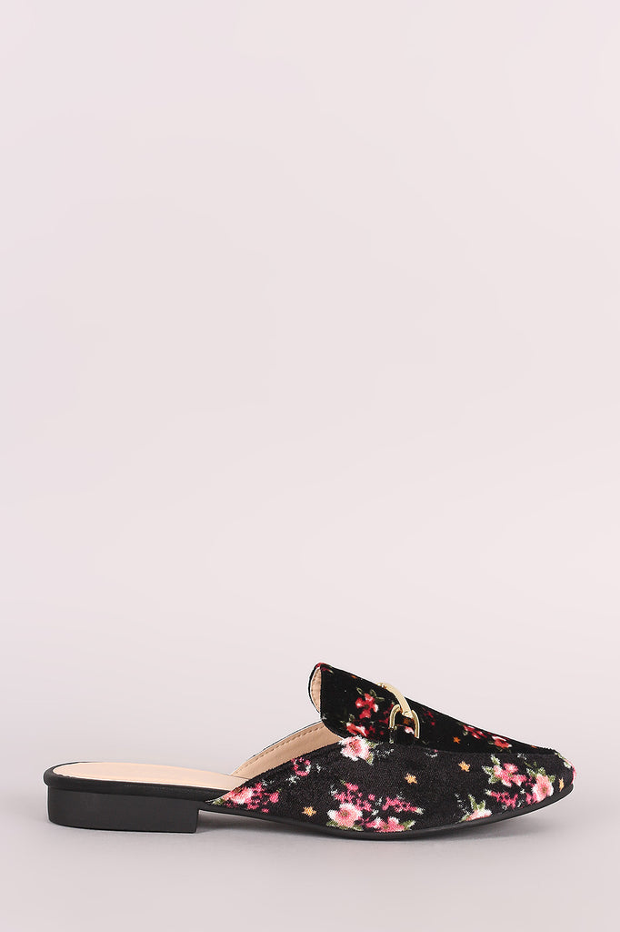 Qupid Floral Print Velvet Horsebit Slip On Loafer Mules