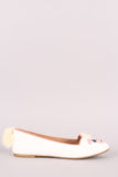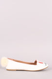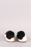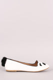 This adorable loafer flat features a rounded toe, embroidered panda/rabbit/sheep face design at front vamp, and back pom pom tail. Finished with a piping details, lightly padded insole, and easy slip on style.