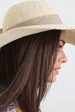 This sun hat features an earth tone linen bow trimming, straw weave design, rounded crown, wide brim, and inner ribbon band for comfort.