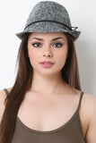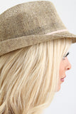 This hat is fedora style with its pinched crown and structured curved brim, featuring an attached bow tie trim around the crown. Finished with interior ribbon lining. 100% Paper.