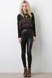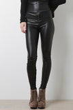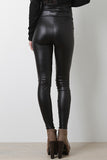 Define your style with the Mysterious Silhouette High Waist Leggings! These sleek leggings feature smooth leather look fabric, high-waist construction, skinny fit, exposed zip closure at back, and finished with stitching detail. Accessories sold separately. Made in U.S.A. 92% Polyester, 8% Spandex.