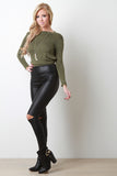 These leggings feature a high elastic waist and slits at the knees. Accessories sold separately. Made in U.S.A. 92% Polyester, 8% Spandex.