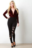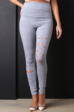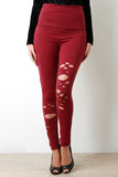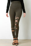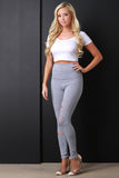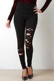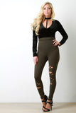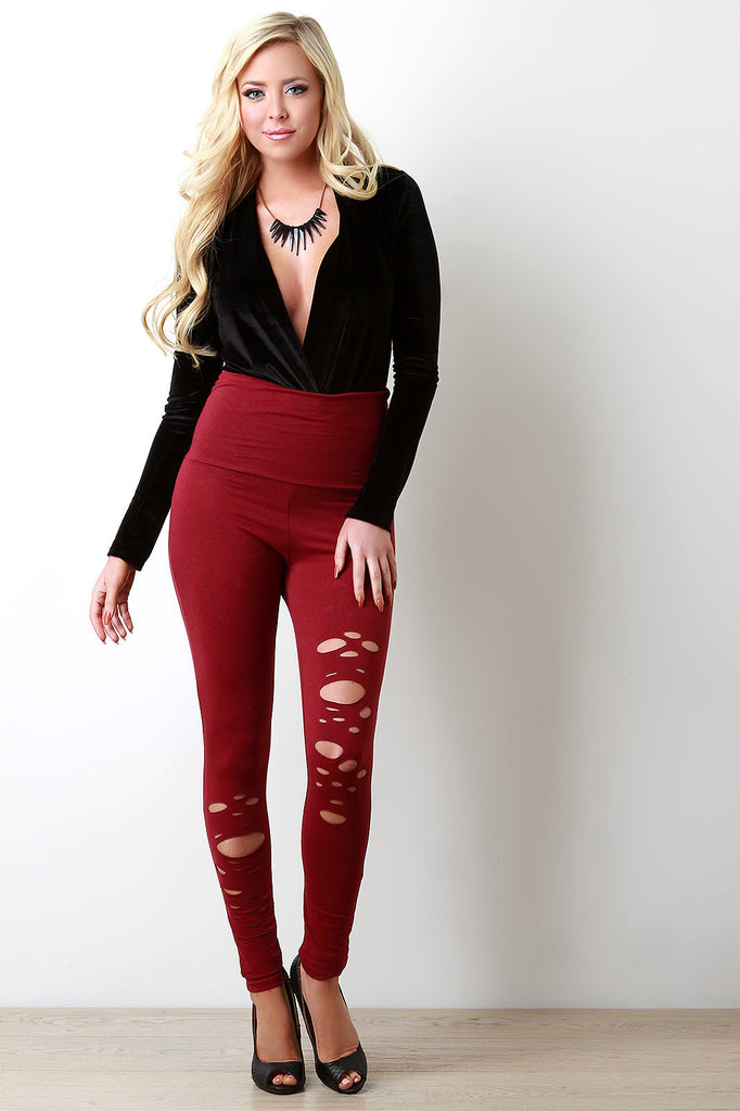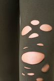 These edgy leggings feature a jersey knit fabric, razor cutout accents, high waist construction, and taper cut. Accessories sold separately. Made in U.S.A. 94% Cotton, 6% Spandex.