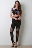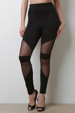 These legging pants feature a stretchy fabrication, elasticized wide panel, high waist, and semi-sheer mesh panels. Accessories sold separately. Made in U.S.A. 96% Polyester, 4% Spandex.
