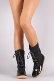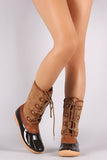 Round Toe Studded Lace Up Duck Mid Calf Boots