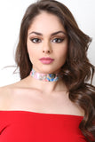 This lovely choker necklace features a multi-colored floral print design and a self-tie closure.