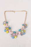 This necklace features 5 multi color jewel flowers, round-link chain, adjustable lobster hook closure, and matching earrings.