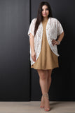This plus size cardigan features paisley lace fabrication, short dolman sleeves, and open front construction. Finished with a high-low hemline. Accessories sold separately. Made in U.S.A. 90% Nylon, 10% Spandex.