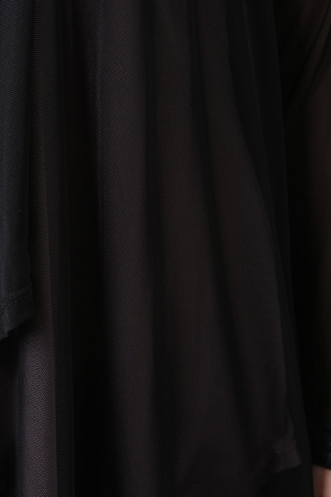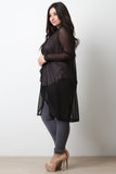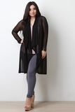 This plus size cardigan features a lightweight mesh fabrication, draped open front construction, long sleeves design, and asymmetrical hem. Accessories sold separately. 90% Nylon, 10% Spandex.