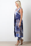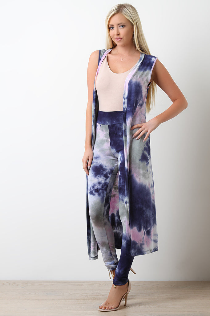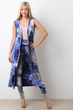This cardigan features a soft knit fabrication, tie dye design, sleeveless construction, open front and a long line hem. Accessories sold separately. Made in U.S.A. 100% Rayon.