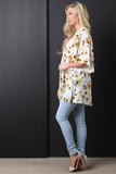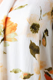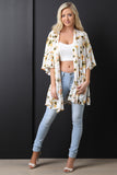 This lightweight cardigan features a textured fabrication with floral prints, three-quarter length sleeves, and a draped open front design. Accessories sold separately. Made in U.S.A. 100% Rayon.
