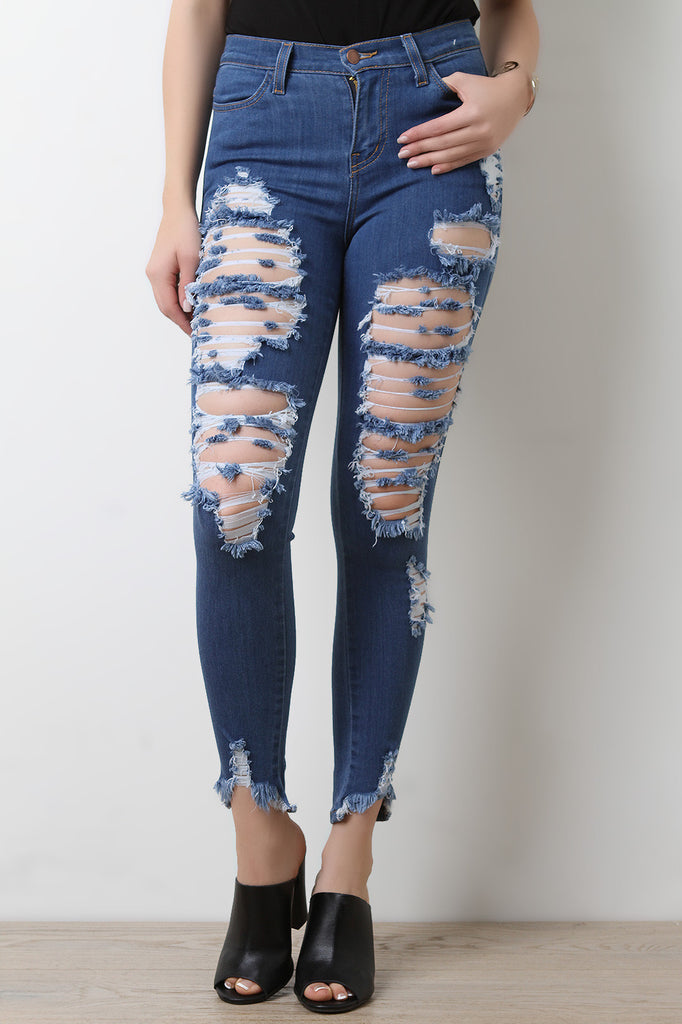 These jeans features a stretchy sculpture fit, distress front, cut off fringed front hem, four pockets design, belt loops, zipper fly and a single button. Accessory sold separately. Made in U.S.A. 68% Cotton, 24% Modal, 7% T400, 1% Spandex.