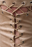 These Lace-Up Vegan Suede Crop Top . Accessory sold separately. 95% Polyester, 5% Spandex.