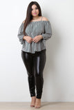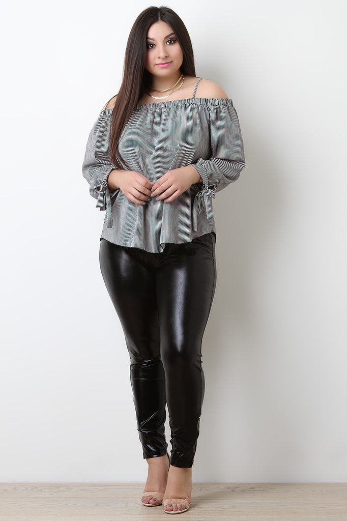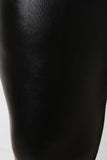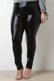 These plus size leggings feature a stretchy sleek vegan leather fabrication, high waisted construction, and taper cut legs with zippered ankles. Accessories sold separately. Made in U.S.A. 100% Polyester.