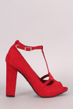 These fun heels feature vegan suede fabric, embroidered lip patch, a peep toe silhouette, t-strap construction, and wrapped heel. Finished with an ankle cuff with adjustable buckle closure and lightly cushioned insole.