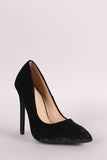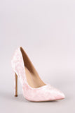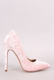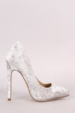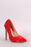 This lovely pointy toe silhouette, soft crushed velvet upper, single sole, and slim stiletto heel. Finished with a lightly padded insole and easy slide style.