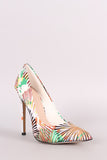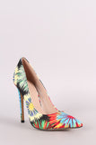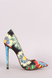 This lovely pump features a fireworks print fabric upper, scooped vamp, pointy toe silhouette, and wrapped stiletto heel. Finished with a lightly padded insole and easy slide style. Pattern placement may vary.
