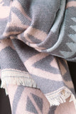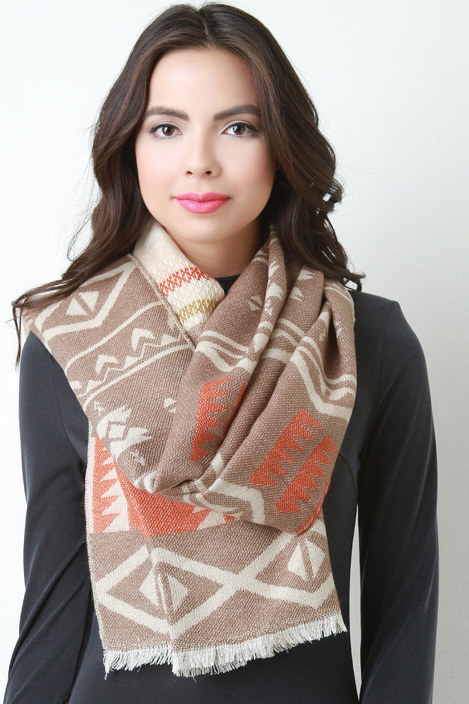 This soft knit scarf features a long construction, tribal pattern design and fringe hem. 100% Acrylic.