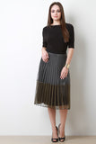 This A-line skirt features a semi-sheer metallic knit fabrication, accordion pleated design, elasticized waist, and lined. Accessory sold separately. Made in U.S.A. 100% Polyester.