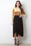 This maxi skirt features lightweight chiffon, pleated design, elasticized waist, tulip hem, and finished with partial lining. Accessories sold separately. 100% Polyester. Contrast: 100% Polyester.