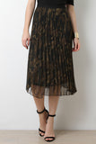 This midi skirt features a semi-sheer fabrication, camouflage print, accordion tulle pleated design, elasticized high waisted, and lined. Accessory sold separately. 100% Polyester. Lining: 100% Polyester.