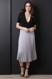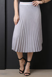 This midi-length skirt features a silky fabrication, accordion pleated construction, high waisted, glitter and a striped contrast waist band. Accessories sold separately. 100% Polyester.