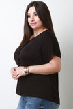 This short sleeves , loose comfy fit, and a slightly high low hemline. Accessories sold separately. Made in U.S.A. 95% Rayon 5% Spandex.