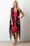 This lightweight vest features semi-sheer fabrication with a floral pattern print, open front with tassel accents, and long line cut. Accessory sold separately. 100% Viscose.