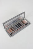 Eyeshadow palette featuring 12 matte and shimmer shades, includes a dual blend brush and mirror.