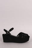 This trendy flatform features a peep toe silhouette with geometric cutouts, wrapped platform wedge heel, and adjustable ankle strap with buckle fastening. Finished with lightly padded insole for comfort.