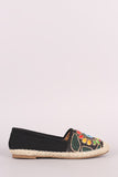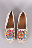 This slip on loafer flat features a beautiful embroidery design with jute rope trimming, rounded toe, and lightly padded insole.