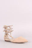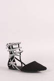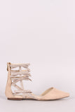 This flat features a glitter caged ankle cuff with bow accent, rear zipper closure, and lightly padded insole for comfort.