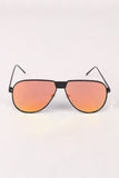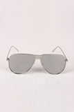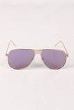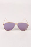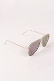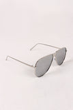 These fashionable sunglasses feature a mirrored lenses with metal frames, flat nose bridge, thin metal arms, and clear nose cushions for comfort.